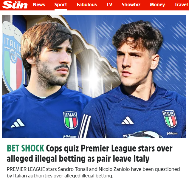 Inoltre, anche la stampa inglese sta affrontando con grande interesse la questione, visto che due dei giocatori coinvolti, vale a dire Tonali e Zaniolo, giocano proprio in Inghilterra in Premier League rispettivamente per Newcastle e Aston Villa.