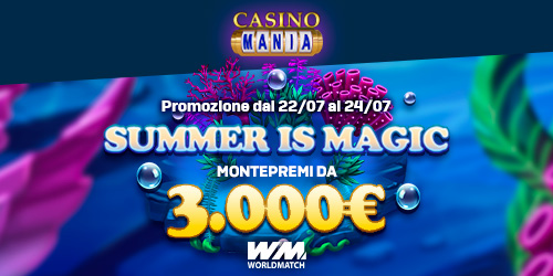 Con la promozione Summer is Magic di WorldMatch, con in palio un montepremi da 3000 euro, l’estate diventa magica su CasinoMania. Dal 22 al 24 luglio i giocatori potranno divertirsi con le slot machine: Pussycats’ Valley; Purple win (Bakoo); The Arena; Devil Girl (Cristaltec); Banana King; Disco 80; Magic Frog.