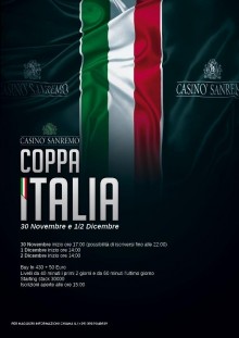 Tutto pronto nelle sale del casinò per un altro evento di Hold’em poker a livello nazionale, dopo l’esclusiva unica tappa italiana dell’European Poker Tour e i tornei settimanali che permettono agli appassionati di provare ogni giorno le emozioni del live. Scatta il 30 novembre la “Coppa Italia”, un nuovo torneo di Hold’em Poker a valenza nazionale. Si tratta di una intensa “tre giorni”, che il 2 dicembre consacrerà il vincitore, che oltre al ricco montepremi si aggiudicherà anche un ticket per il prossimo IPT . Sono attesi moltissimi players da tutta Italia.