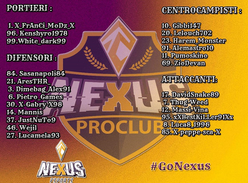 eSports, ripartono i campionati Pro Club: Team Nexus ufficializza la rosa completa per partecipare alla Serie C di VPG, Serie A di VPL Italy e Serie A di FVPA