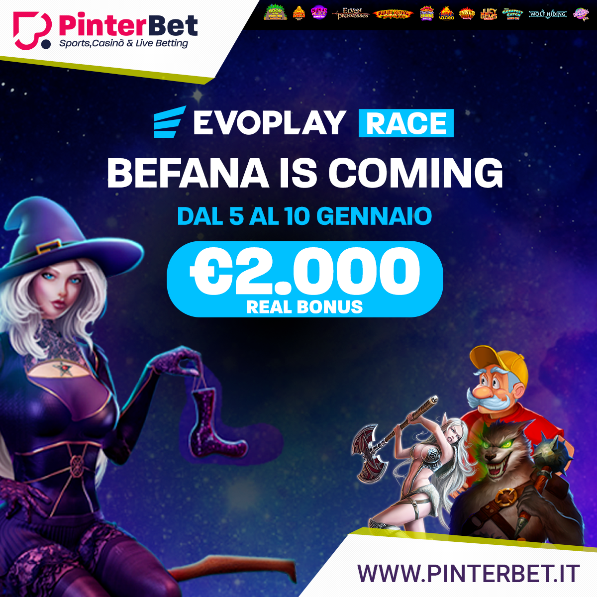 Montepremi della Befana su PinterBet, la classifica realizzata in partnership con Evoplay premierà i migliori giocatori del weekend. I giochi più accattivanti e divertenti sono parte della race, “Befana is coming” e saranno 50 i premi da erogare.
