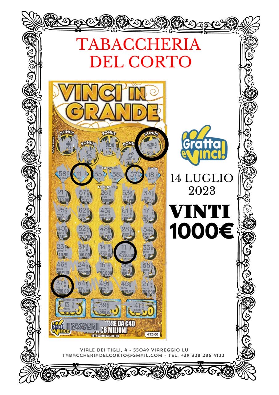 Già il nome evoca successi, ma se poi succede davvero allora si può parlare di conferma. Stiamo parlando di un Gratta e Vinci particolare, il “Vinci in Grande“, l’unico tagliando che garantisce un premio minimo (40 euro) superiore al costo del tagliando (25 euro). Protagonista della vincita particolare la Tabaccheria del Corto, in viale dei Tigli 4 a Viareggio in provincia di Lucca.