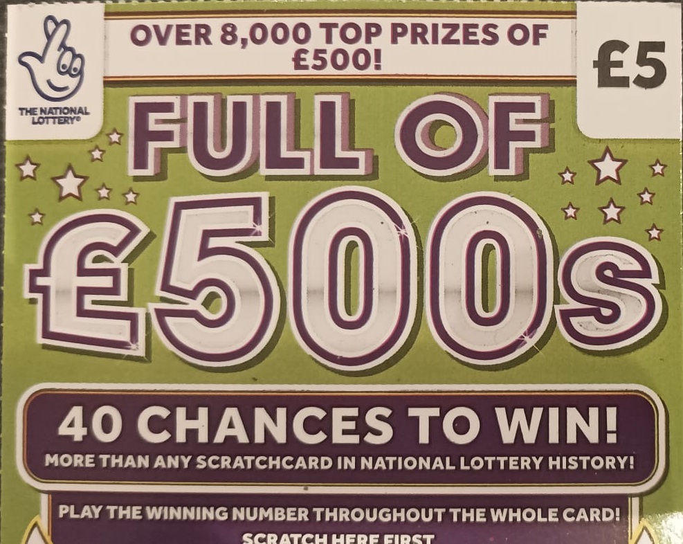 Il Gratta e Vinci si chiama “Il pieno di 500 sterline” ed è tagliando in vendita in Inghilterra al costo di 5 pounds. Già sul tagliando c’è un annuncio che la dice lunga sulla caratteristica principale di questo Gratta e Vinci: “40 chances to win!“.