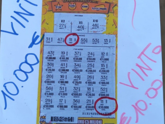 Il vincitore, un uomo – un cliente non abituale della tabaccheria – è entrato nel locale giovedì 15 giugno, intorno alle 18. Ha quindi acquistato un “Miliardario Maxi”. Grattando il tagliando ha trovato nell’area “i numeri vincenti” il numero 11. Questo numero, che si trovava anche nell’area “i tuoi numeri” gli ha portato molta fortuna, visto che si è messo in tasca una vincita di ben 10.000 euro. lp/AGIMEG
