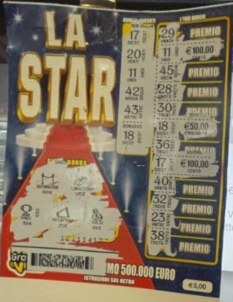 Nell’area ‘I tuoi Numeri’ ha trovato l’11, il 17 e il 28, numeri presenti anche nell’area ‘Numeri Vincenti’. Tra questi il 18 si trovava sotto il ‘Bonus x5’. Ai numeri 11 e 17 corrispondeva un premio di 100 euro, mentre al 18 50 euro che andavano però moltiplicati per 5. La vincita totale con i tre numeri suddetti era quindi di 450 euro. Ma altri 50 euro sono arrivati dal ‘Gioco Bonus’, visto che sotto la casella che riportava tale importo è apparso il simbolo della ‘coppa’. Il cliente della tabaccheria di Palestrina si è quindi messo in tasca una vincita di 500 euro.