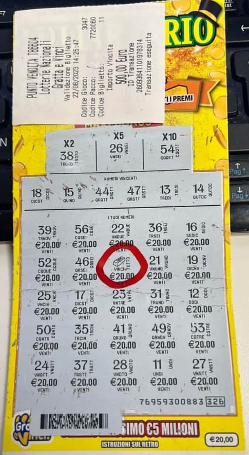 Ebbene, il cliente dell’agenzia in provincia di Cosenza ha colpito proprio grazie ad uno dei simboli vincenti. Grattando nell’area “i tuoi numeri” ha infatti trovato il simbolo del “lingotto” e quindi ha incassato tutti i premi del tagliando per una vincita totale di 500 euro.