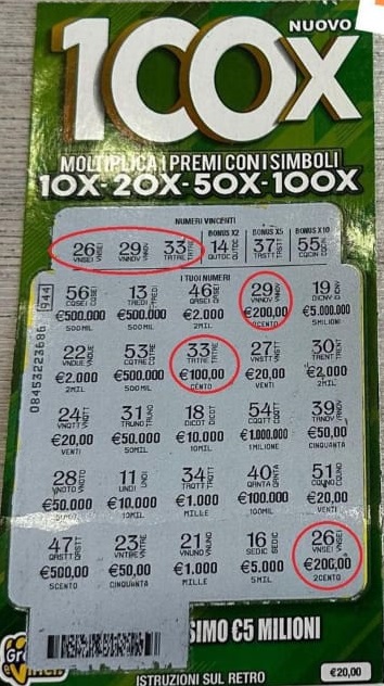 Si trattava degli unici tre numeri senza bonus. Grattando sotto i tre numeri validi, il fortunato giocatore si è accorto di aver portato a casa una vincita di 500 euro.