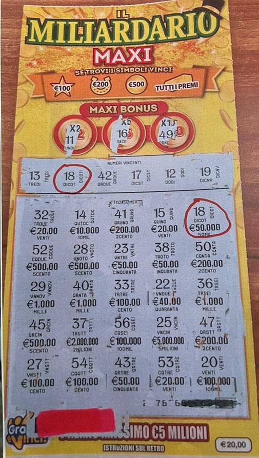 Protagonista della super vincita è stato il tagliando, dal costo di 20 euro, “Il Miliardario Maxi“. Questo tipo di tagliando prevede diverse modalità di gioco. Oltre al consueto abbinamento tra i numeri delle aree “i numeri vincenti” e “i tuoi numeri‘, il ‘Miliardario Maxi’ ha altre opzioni di gioco per ottenere dei premi interessanti.