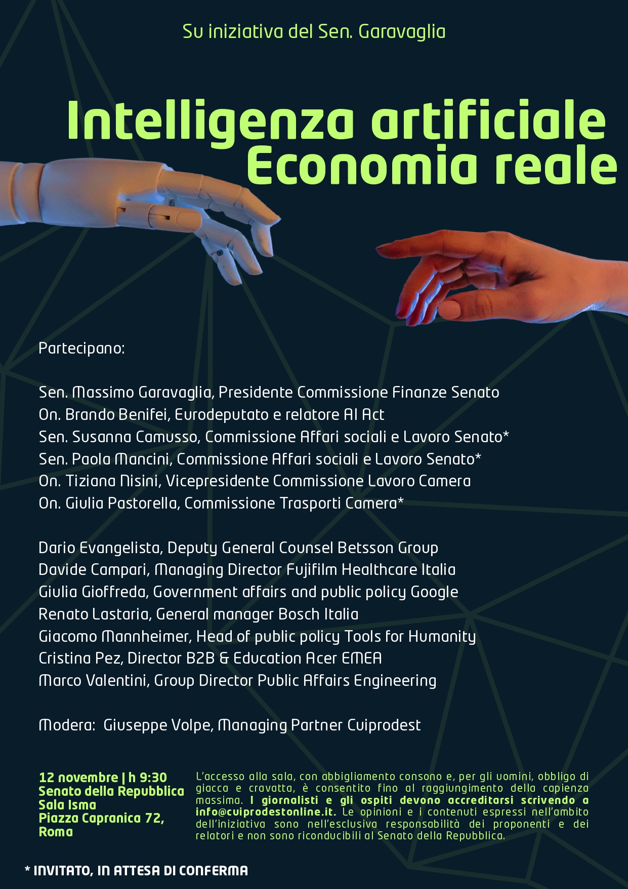 Si terrà il prossimo 12 novembre alle ore 9.30, presso il Senato della Repubblica, un importante convegno dal titolo: “Intelligenza Artificiale Economia Reale“. Si tratta di un evento voluto dal senatore Massimo Garavaglia, per evidenziare l’impatto dell’intelligenza artificiale, in tutte le sue forme, sul mondo dell’economia.