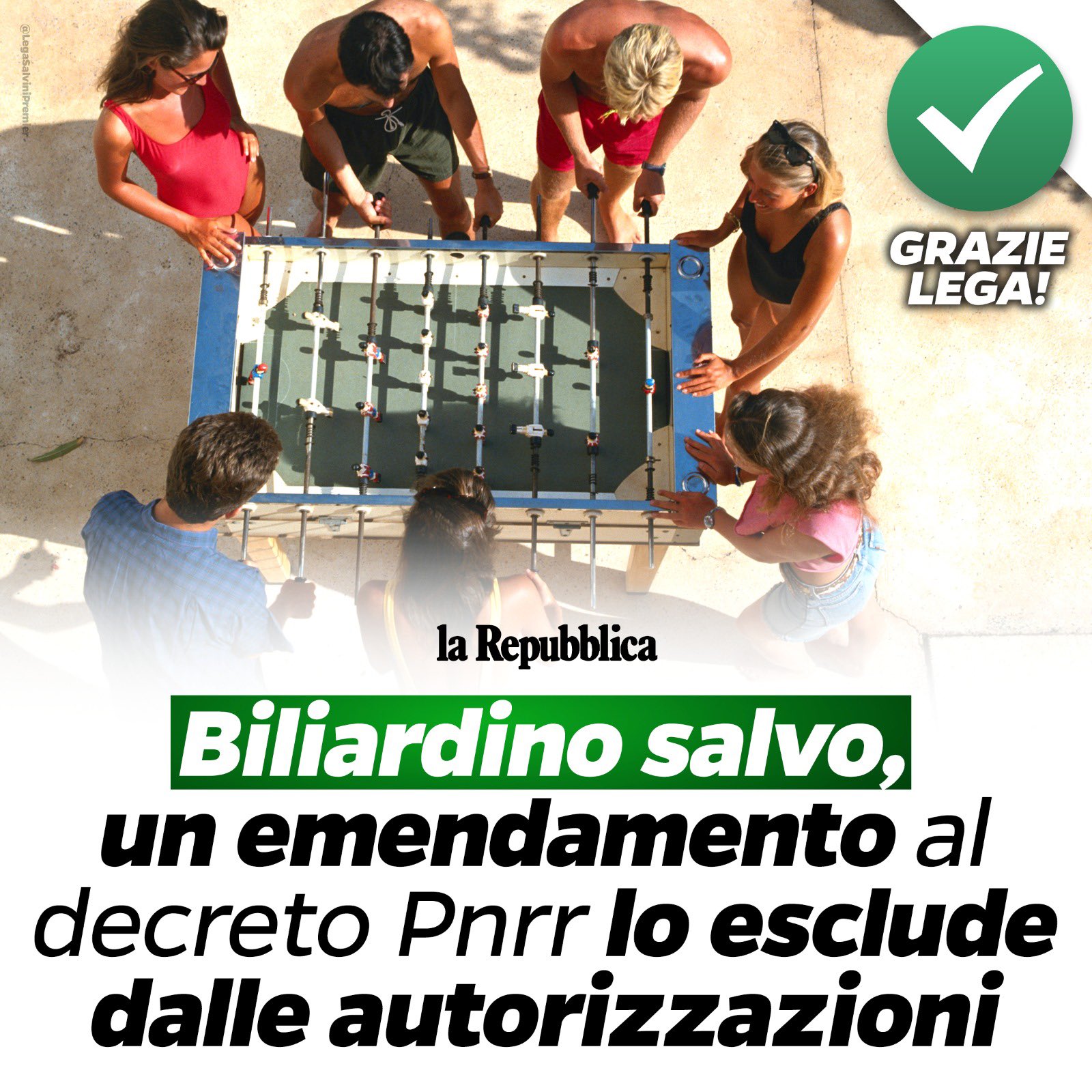 Ed a parlarne è stato anche il leader della Lega Matteo Salvini che, riferendosi all’emendamento inserito nel PNRR sui comma 7, ha detto: “Grazie a chi, a nome della Lega, ha corretto una norma assurda. Libero biliardino in libero Stato!”.