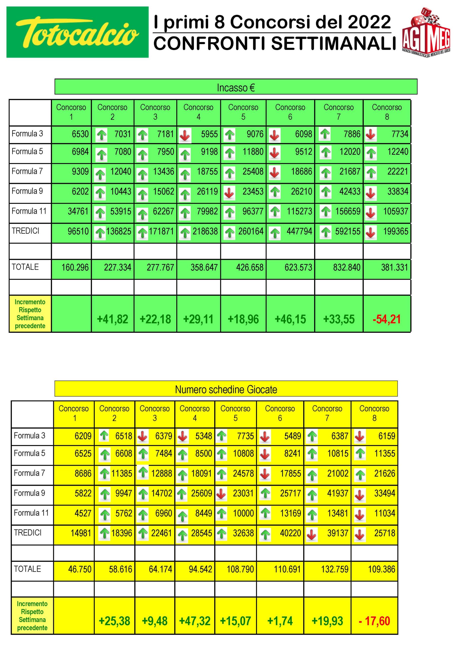 Dopo 7 concorsi contraddistinti dal segno più, il nuovo Totocalcio frena e nel concorso dell’ultimo weekend chiude raccolta e giocate con un calo. Una diminuzione delle giocate e della raccolta dovuta all’assenza dei jackpot che sono stati assegnati nel concorso precedente.