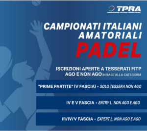 Il padel è lo sport del momento che coinvolge ormai migliaia di appassionati, i Campionati Italiani Amatoriali del circuito TPRA sono la dimostrazione del successo del padel sul territorio italiano, con tornei ed eventi dal Friuli alla Sicilia passando per Toscana e Abruzzo.
