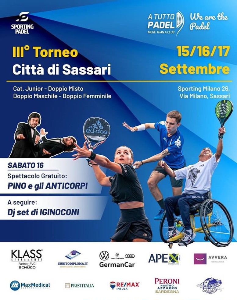 Tutto pronto per un grande fine settimana all’insegna del padel a Sassari. Dal 15 al 17 settembre, infatti, va in scena il torneo “Città di Sassari” con ben 300 iscritti da tutta la Sardegna e 100 squadre partecipanti al maschile e al femminile.