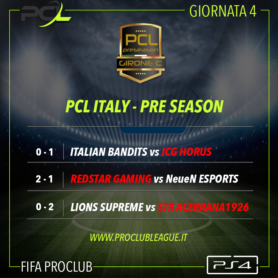 Discorso diverso per il Girone C, che come nel girone A non vediamo comparire pareggi, vincono ICG Horus, Redstar Gaming e STR Acerrana1926.
