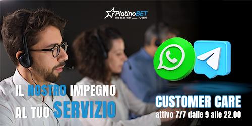 Uno dei punti di forza di Platinobet è l’attenzione quotidiana verso il cliente, l’operatore ha quindi deciso di rafforzare questo aspetto andando ad aggiungere anche Telegram al canale di comunicazione Whatsapp, già attivo con grande successo.