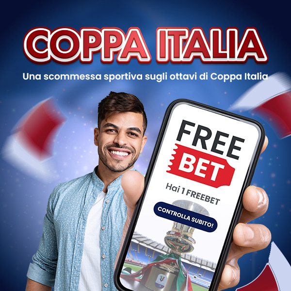 Il Bonus è erogato sotto forma di Free Bet dal valore di 2 euro valido per una scommesse sportiva che deve contenere necessariamente tutti e quattro gli avvenimenti del palinsesto Coppa Italia, in programma dal 2 al 4 gennaio 2024, del raggruppamento Marcatori Calcio.