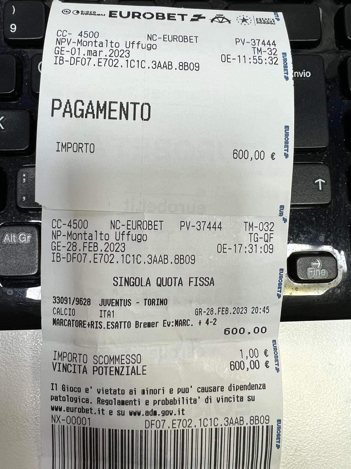 Lo sfortunato scommettitore aveva puntato sul risultato esatto di 4-2 tra Juventus-Torino, inserendo però anche l’opzione che Dusan Vlahović, centravanti dei bianconeri, avrebbe realizzato almeno un gol.