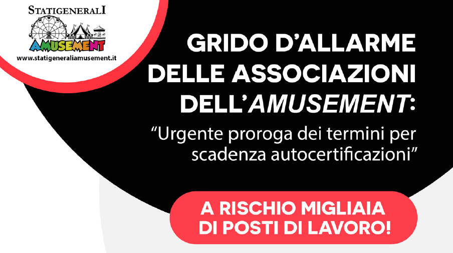 “Urgente la proroga dei termini per la scadenza delle autocertificazioni. A rischio migliaia di posti di lavoro!”. E’ questo il grido di allarme lanciato da parte delle Associazioni dell’Amusement.