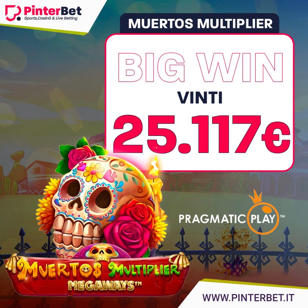 Casinò ricco in casa PinterBet, pagati 25mila euro con la slot “Muertos Multiplayer”. Dal provider Pragmatic arriva un’altra super vincita che mette il sito di gaming online PinterBet tra i più vincenti del panorama italiano.