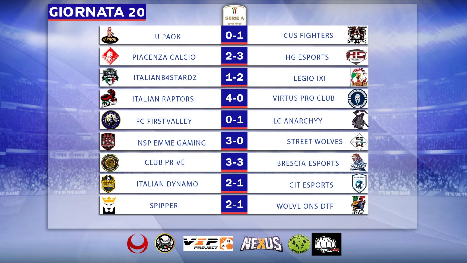In Cus Fighters tornano a vincere nella Serie A del VPG Italy. Nella 20ma giornata sono andati a segno anche Hg eSports, Legio IXI, Italian Raptors, Lc Anarchy, Nsp Emme Gaming, Italian Dynamo e Spipper. Pareggio combattuto, 3-3, per Club Privè e Brescia eSports. Ecco tutti i risultati: